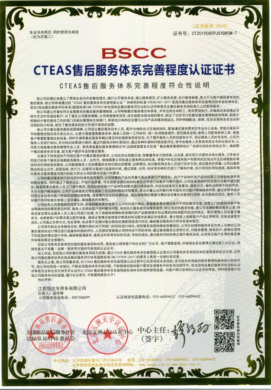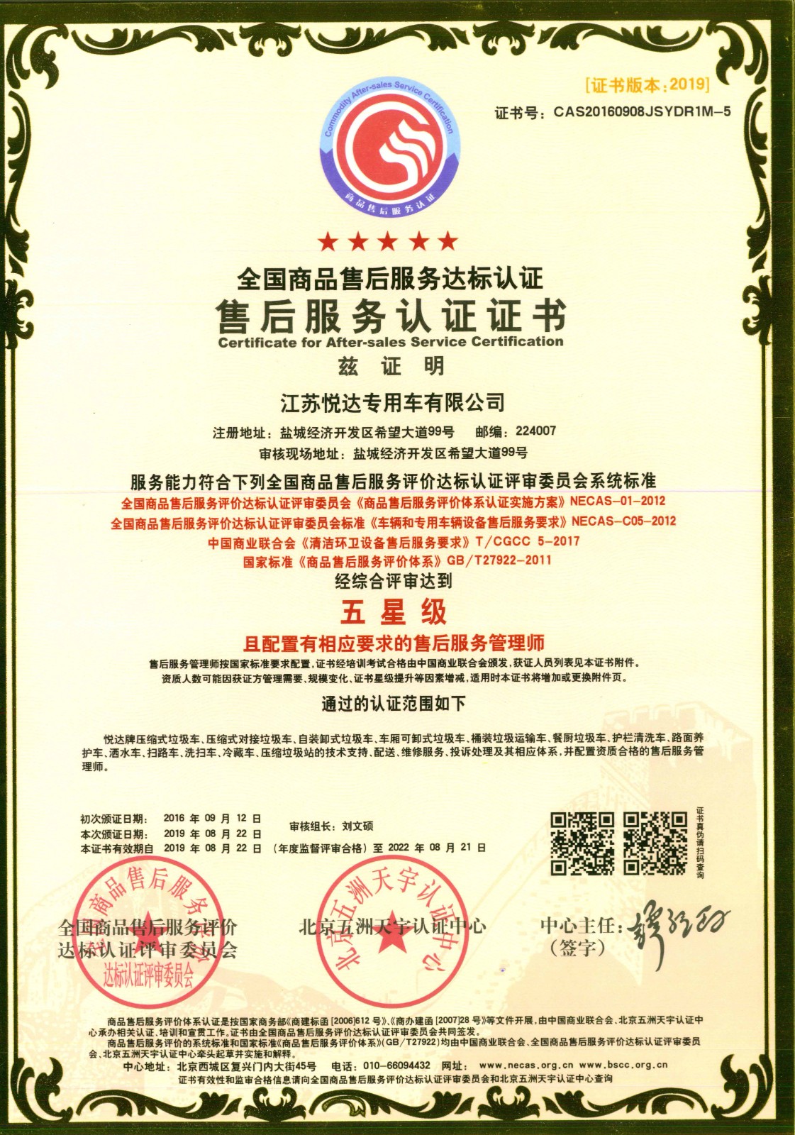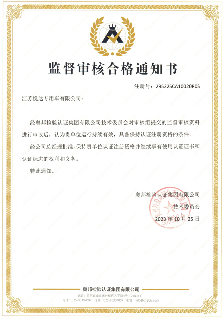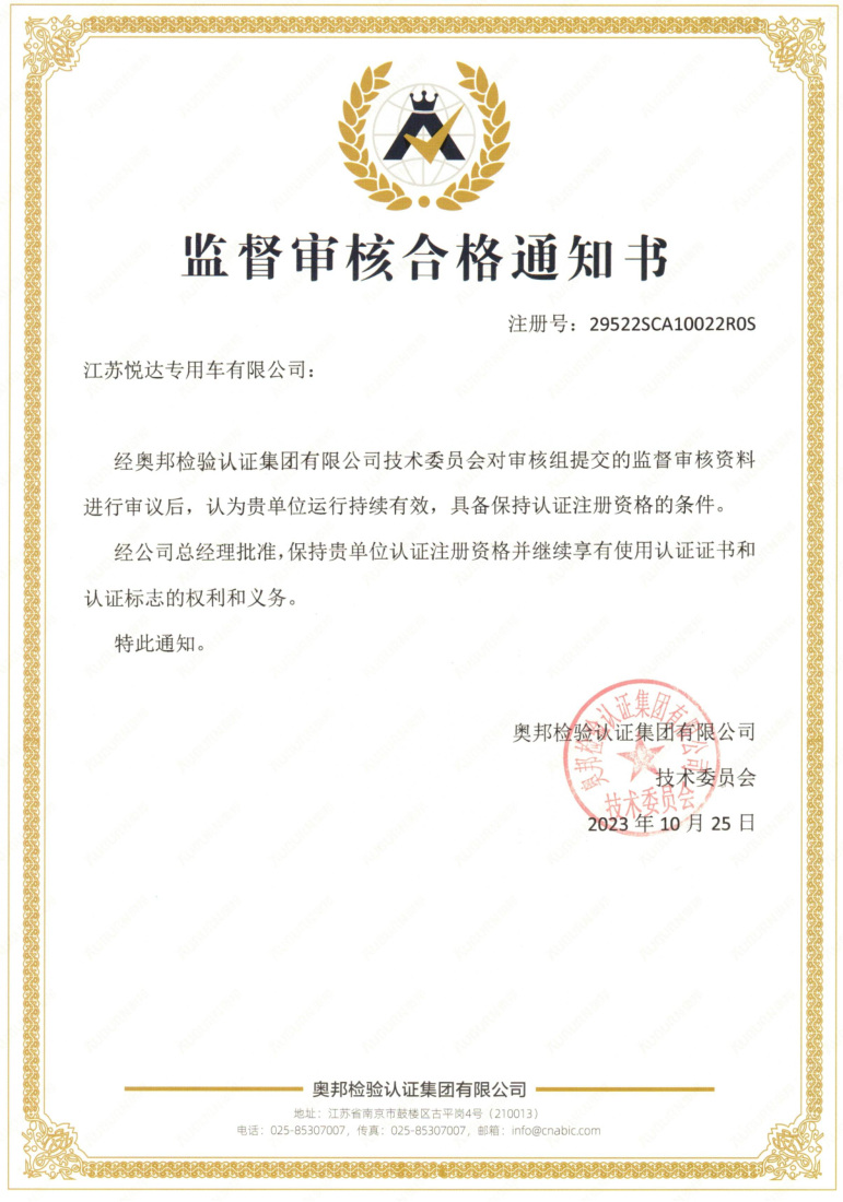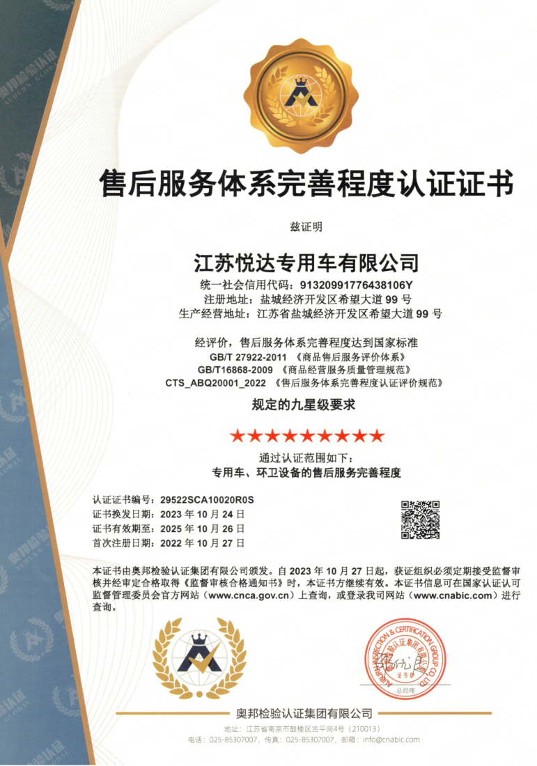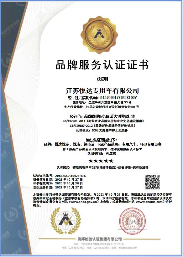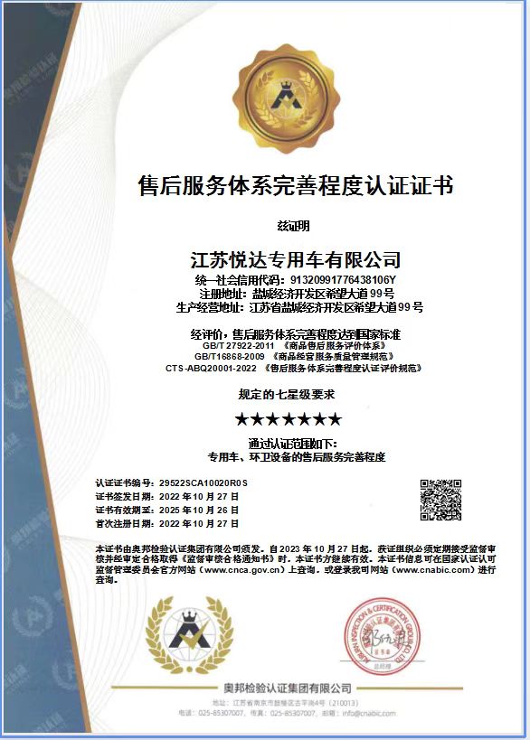 悦达专用车售后服务认证