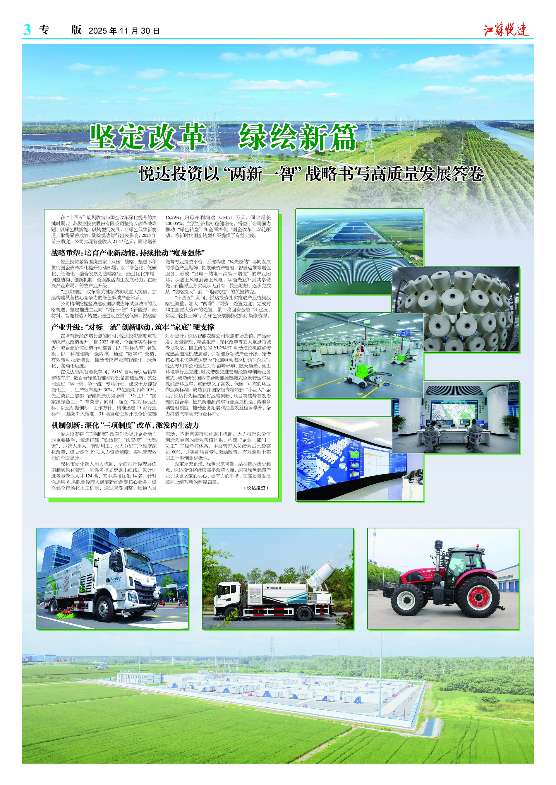 在“十四五”规划收官与国企改革深化提升的关键时期,江苏悦达投资股份有限公司坚持以改革破难题、以绿色赋新能、以转型促发展,在绿色低碳新赛道上取得显著成效。剔除悦达智行出表影响,2025年前三季度,公司实现营业收入21.47亿元,同比增长16.29%;归母净利润达7554.71万元,同比增长200.05%。主要经济指标稳健增长,得益于公司强力推动“绿色转型”和全面深化“国企改革”双轮驱动,为新时代国企转型升级提供了有益实践。战略重塑:培育产业新动能,持续推动“瘦身强体”悦达投资紧紧围绕国家“双碳”战略,坚定不移贯彻国 ...